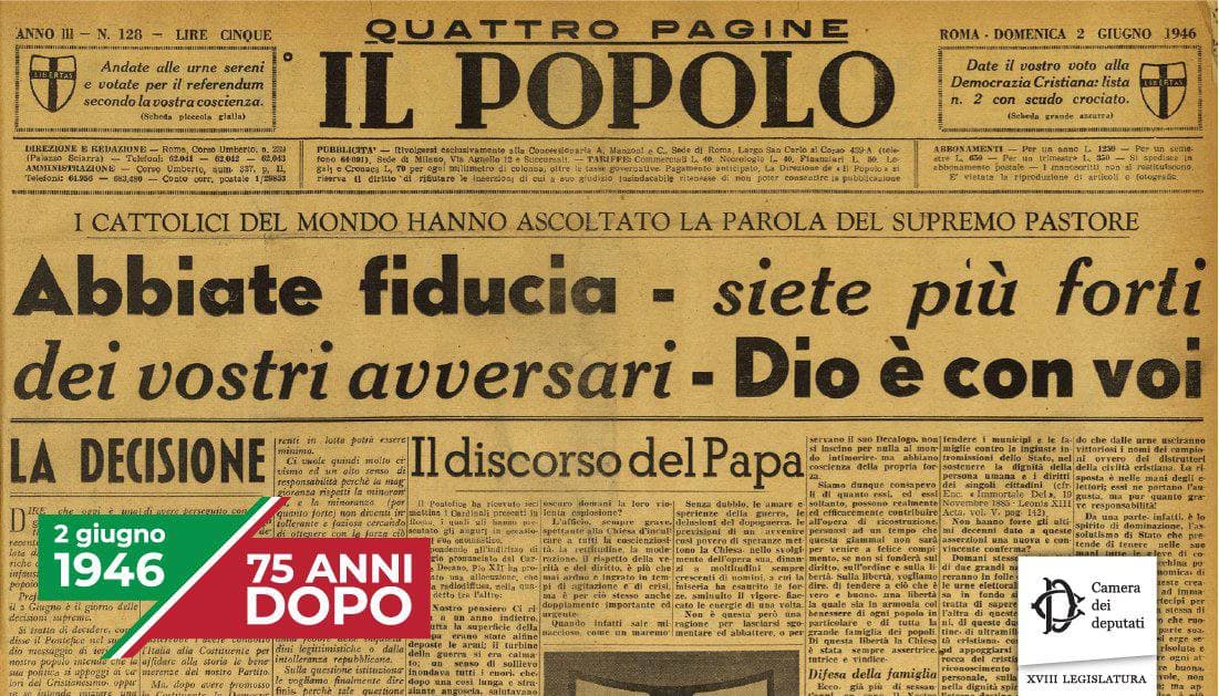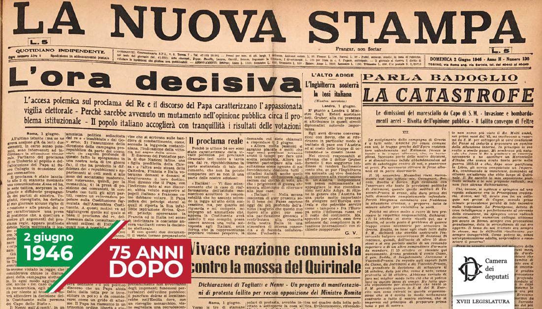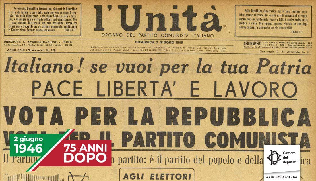Il 2 giugno si ricorda il referendum del 1946 che dopo la Seconda Guerra Mondiale ha sancito la fine della monarchia e la nascita della Repubblica.